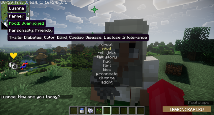 Мод на изменение деревенских жителей MCA Reborn внесет изменения в поведения деревенских жителей, которые теперь смогут взаимодействовать, как с игроками, так и с друг с другом. У вас появится возможность сделать им подарок, и даже жениться и завести детей, которые со временем вырастут и и будут жить, как обычные люди.
